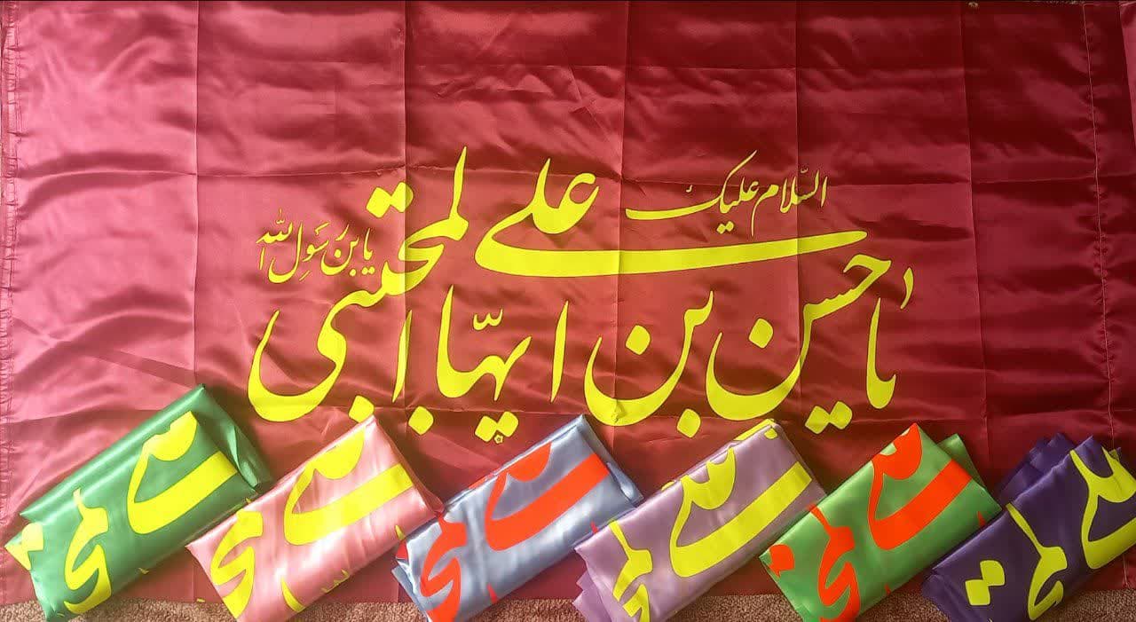 پرچم ساتن الوان امام حسن مجتبی ۷۵×۱۵۰سانتی متر
